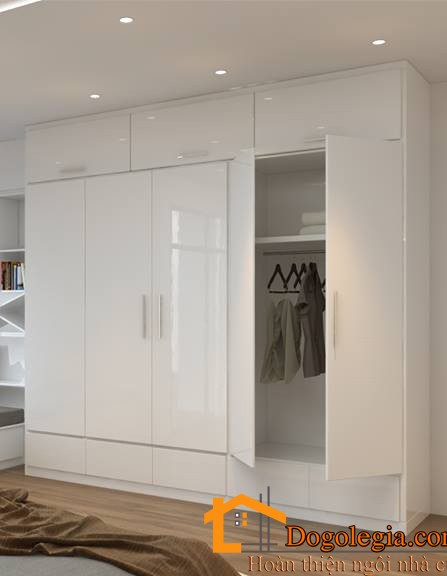 Có thể bạn đang muốn mua chiếc tủ quần áo gỗ công nghiệp cho phòng ngủ nhưng chưa biết chọn kiểu nào, thì hãy ngắm nhìn mẫu tủ quần áo vừa hiện đại lại tiện nghi này xem. Tủ thiết kế khác so với truyền thống, cao kịch trần tối đa không gian bên trên, giúp bạn lưu trữ chăn gối mùa đông rất gọn gàng bên trong chiếc tủ. Hơn nữa tủ làm bằng chất liệu gỗ công nghiệp cao cấp được phủ bên ngoài lớp sơn trắng khiến cho phòng của bạn rộng rãi hơn. Chỉ một chút sáng tạo với gam màu nâu trên cánh tủ tạo điểm nhấn thú vị cho chiếc tủ quần áo.